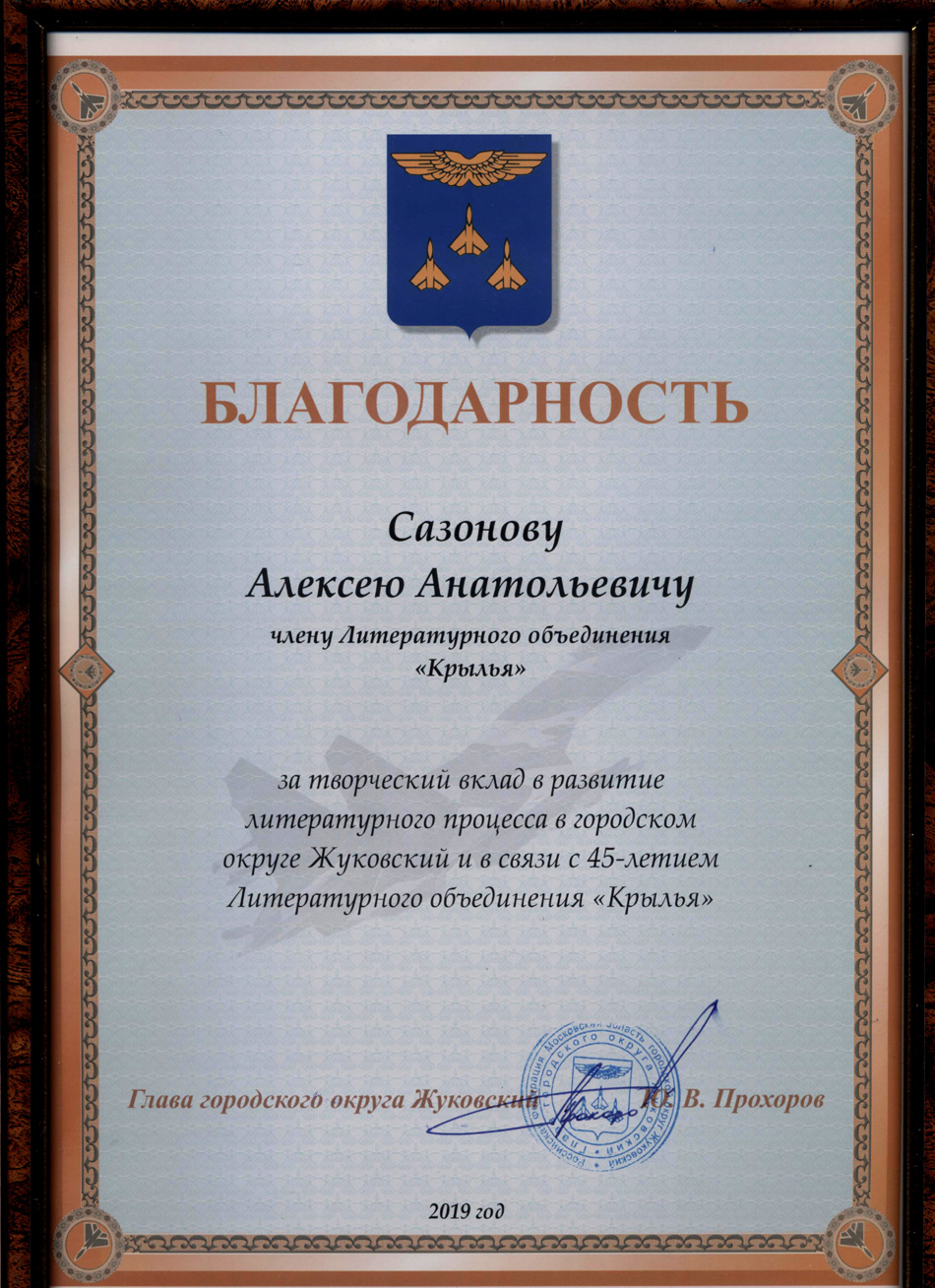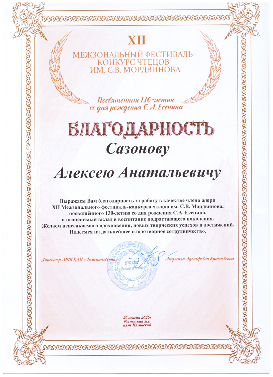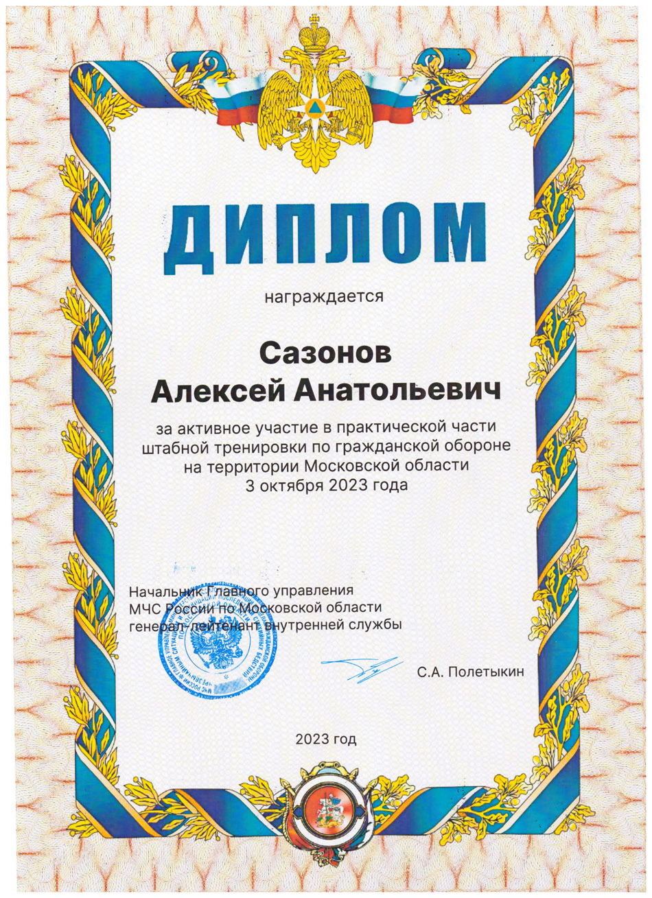Благодарственные письма и награды Сазонова Алексея Анатольевича