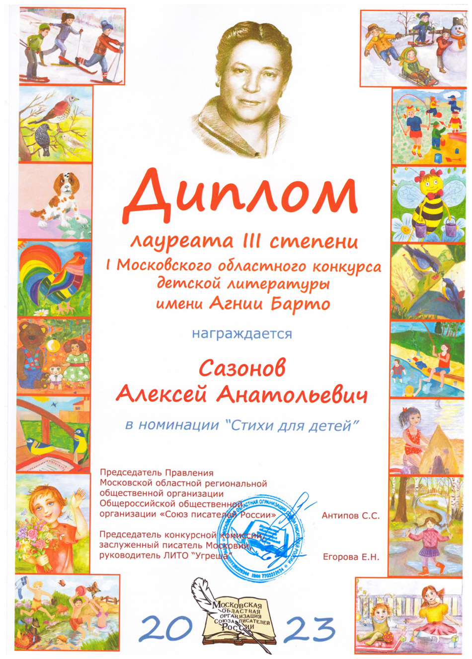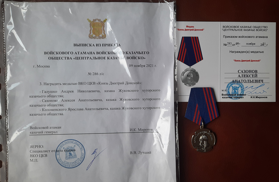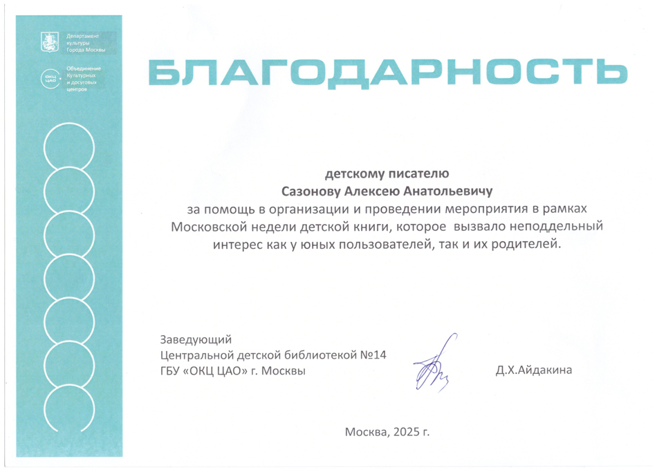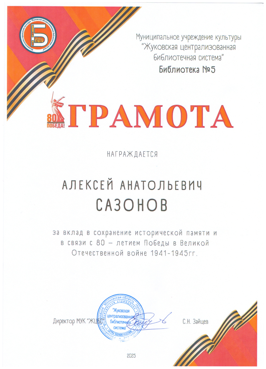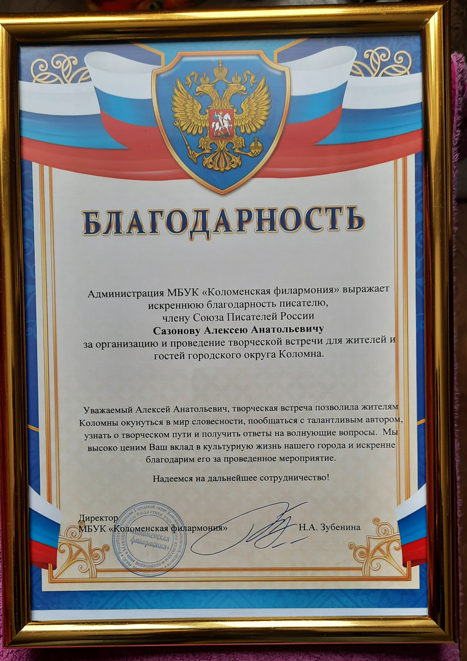 Благодарственные письма и награды Сазонова Алексея Анатольевича