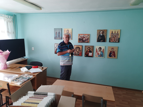 В числе гуманитарной помощи привезённой жуковчанами были компьютеры, принтеры и сканеры для оборудования компьютерного класса (сбор гуманитарной помощи организовала ветеранская организация МВД). А также иконы для часовни находящейся прямо в школе. «Дети в этой школе верующие. Часть из них оказалась в статусе беженцев. Им не нужно напоминать, чтобы они не баловались на молебне и слушали батюшку», - сказал Кудрявцев Виктор Александрович, организатор нашей поездки, ветеран МВД. И действительно, на молебне чувствовалось чуткое отношение детей к проповеди священника, призывающего помощь Божию в новом учебном году. Виктор Александрович также добавил, что дети в этих непростых условиях становятся дружные, сплоченные и решают возникающие трудности всем коллективом. «Так легче выжить», - пояснил он.