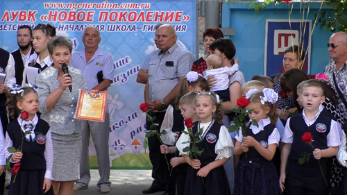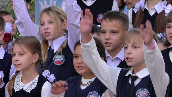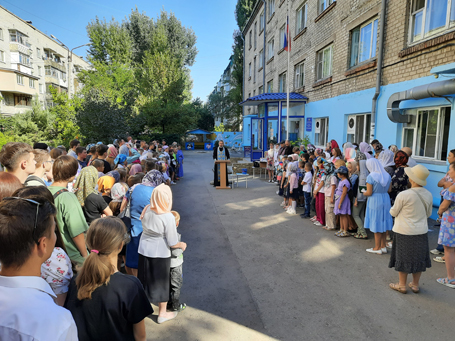 Во время торжественной линейки в День знаний на школьном дворе Евгений Трунов исполнил вокальный номер на военно-патриотическую тему.