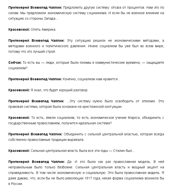 Во-вторых, мы сами принесли в жертву капиталистической унии великое имя Сталина, чтобы задружиться с западом и хоть ковриком у порога вписаться в западный мир. Но этого западу оказалось мало. Потом мы слили  социализм и вместе с ним Советский Союз со всей промышленностью. Западный Молох 30 лет набивал свою ненасытную утробу нашими ресурсами, и опять стал показывать мохнатой когтистой лапой на свой шамкающий рот: маловато будет! Всю страну с потрохами ему подавай, поганому идолищу, а он в лучшем случае оставит 10-15 млн. "счастливчиков" для обслуживания нефтяных труб. Это не преувеличение, М. Олбрайт говорила про это в открытую, и не только она. Молох закабалил нас колониальной системой управления, в результате чего наше население стало таять темпами мартовских сугробов. Но Молоха все равно это не устраивало – слишком медленно, по его мнению, мы вымираем. Поэтому он решил ускорить темпы и сам спровоцировал открытое военное противостояние России с западным блоком. Жадность и неприкрытая вероломность запада скорее всего выйдут ему боком. В результате чего Молох запросто может получить ядерной русской дубиной по своей лупоглазой обрюзгшей физиономии (как минимум половина мира будет аплодировать этому), а Россия восстановит суверенитет, родит (или скорее возродит) наднациональную идеологию, обуздает коррупцию, искоренит дух предательства, наденет смирительную рубашку на разнузданный национализм и этническую преступность, русские, наконец, возьмут на себя ответственность государствообразующего народа и вместе с этим, вне всякого сомнения, Россия вознесёт имя Сталина на должную высоту, так как в имени Сталина, его образе заложен народно-освободительный потенциал, справедливая жизнь и победные коды. И вот вопрос: стоит ли церковнослужителям строить баррикады антисталинской ереси на пути Победы и возрождения России, когда задолго до их рождения Патриарх Алексий I расставил все точки над "i" назвав Сталина богомизбранным вождём? Стоит вдумчиво прочитайте слова Патриарха на смерть Вождя. "Упразднилась сила великая, нравственная, общественная: сила, в которой народ наш ощущал собственную силу!"