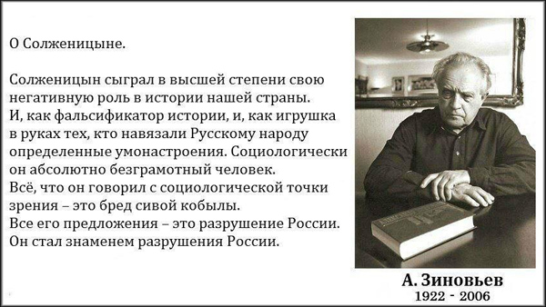 Знаете, почему так страстно и единогласно либеральная страта взяла на вооружение у Солженицына теорию подавления, расчленения и разоружения России? Потому что Солженицын был не автор, а лишь проводник диверсионных концепций, главная из которых связана с признанием преступности Советской России и необходимости утилизации её наследия. Полистайте европейские и американские газеты, почитайте украинские сайты — там написано одно и то же. Одни и те же тезисы. Одни и те же формулы. Сплошной неприкрытый солженизм. https://dzen.ru/a/XPKViYjTfgCvZ-Y9