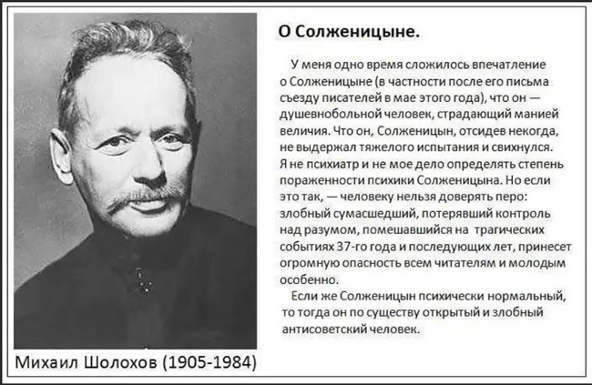 Твардовский в глаза сказал Солженицыну: "У вас нет ничего святого. Ваша озлобленность уже вредит вашему мастерству". Не симпатизировал Нобелевскому лауреату и Михаил Шолохов, назвавший произведение Солженицына "болезненным бесстыдством".